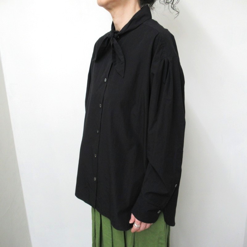 スカーフを巻いたようなデザインのリボンシャツ。