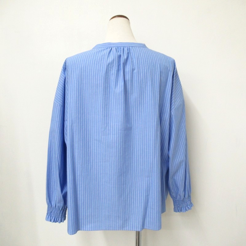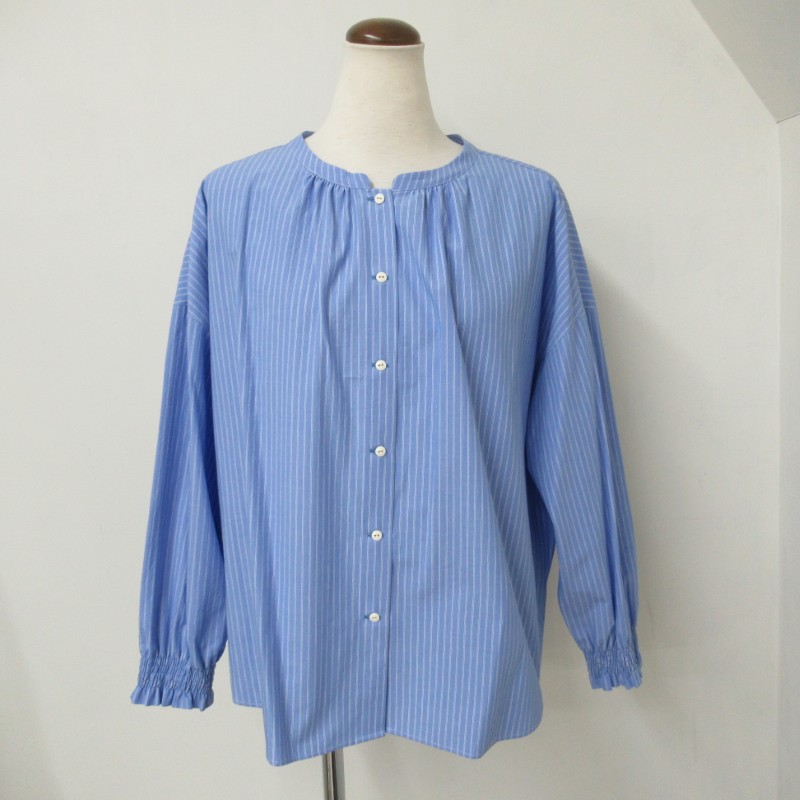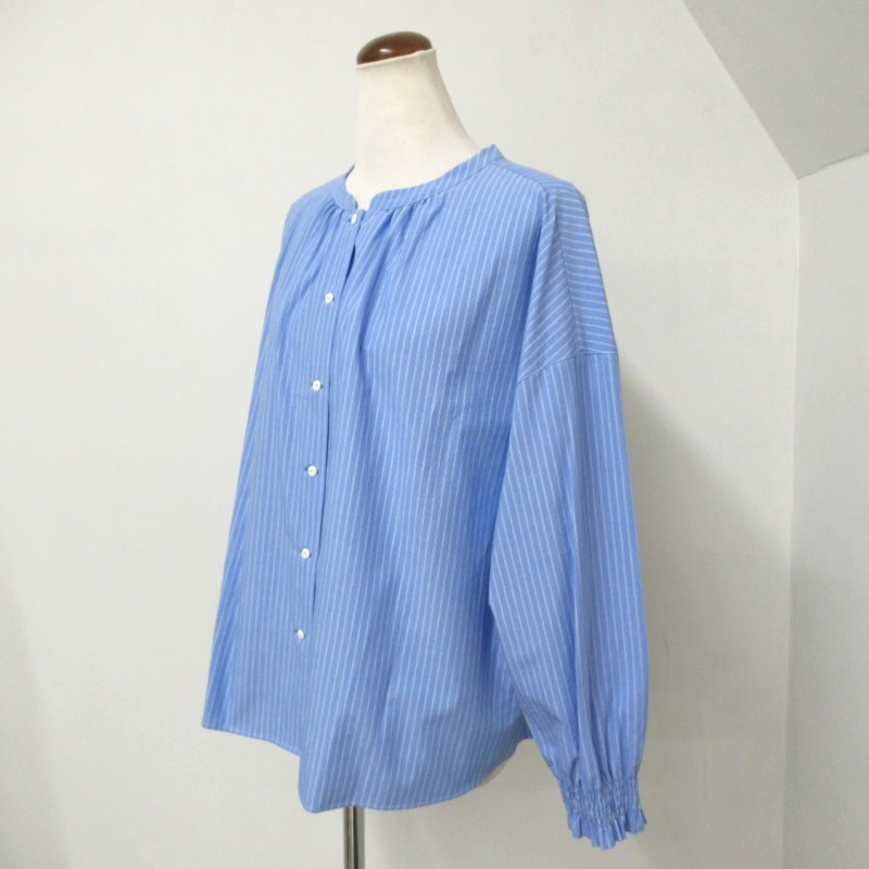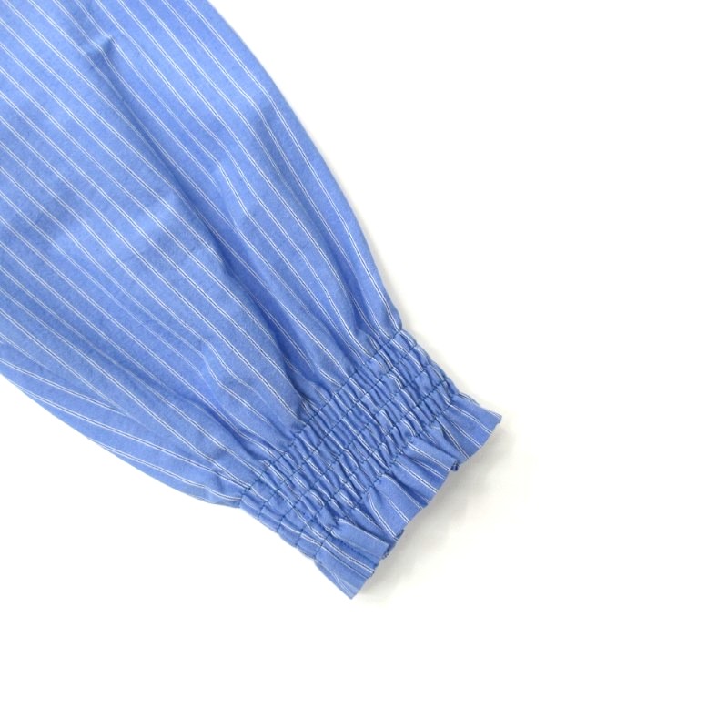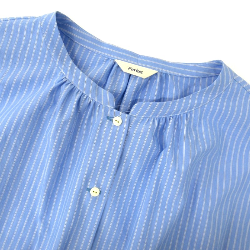 Parkes 袖口シャーリングストライプブラウス /SAX2 【日本製】