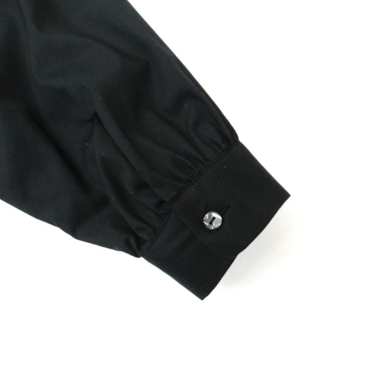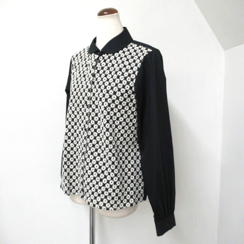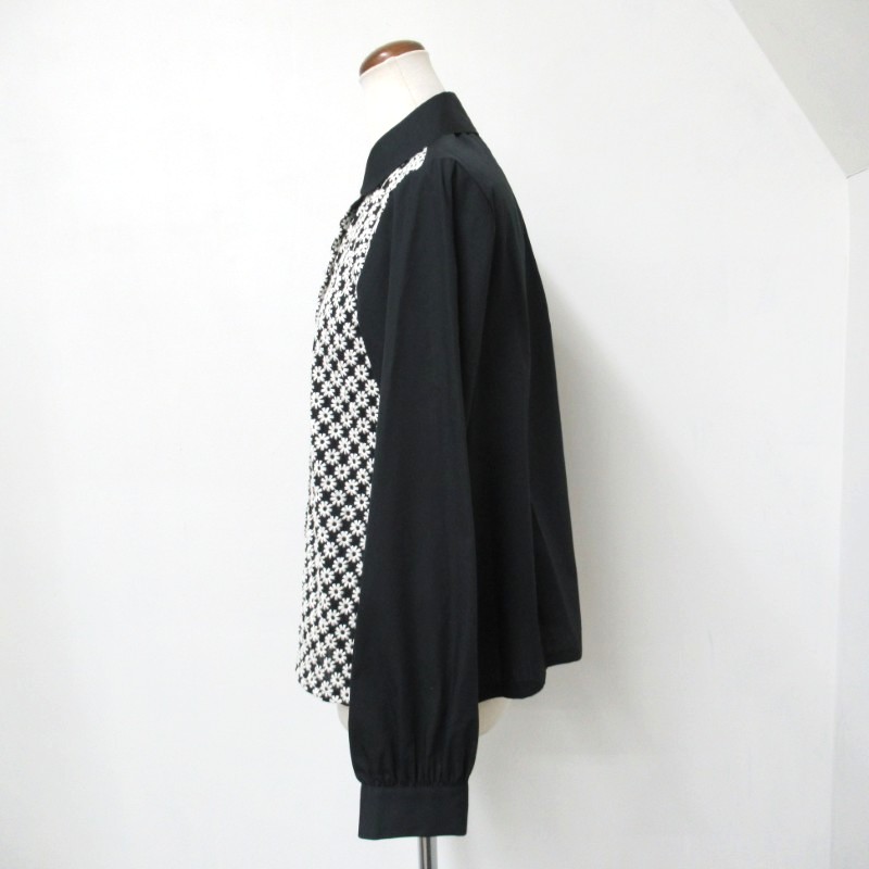 BKカラーの生地の前身頃に花刺繍を施したブラウス。