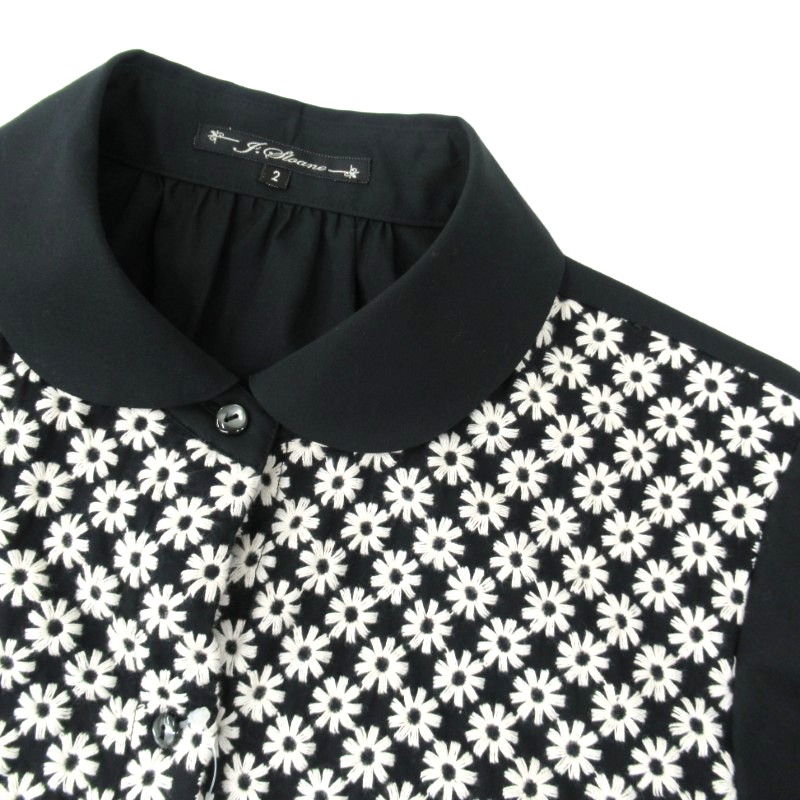 J.Sloane 配色フラワー刺繍ラウンドカラーブラウス /BK2 【日本製】