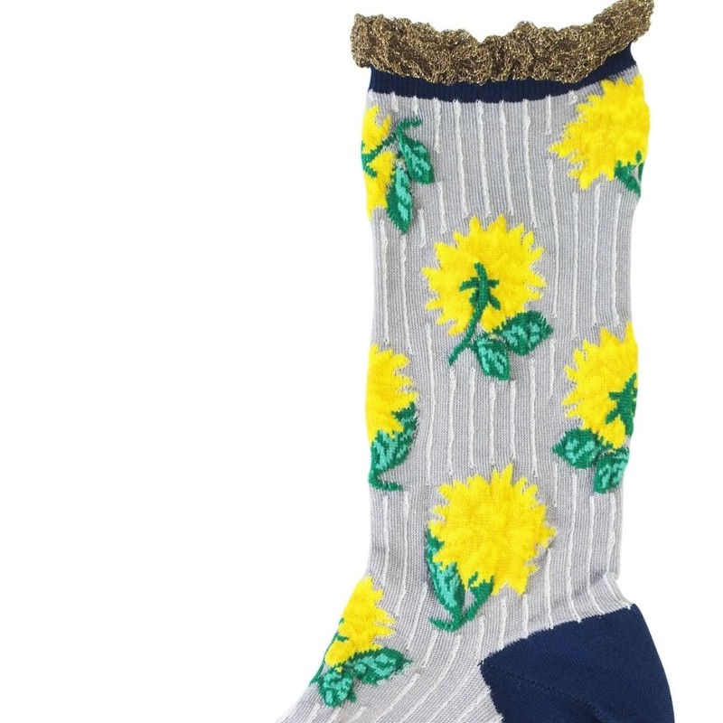 andeotte ハイゲージクルーソックス BLOOM/GY 【日本製】