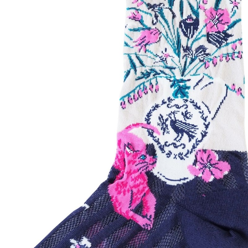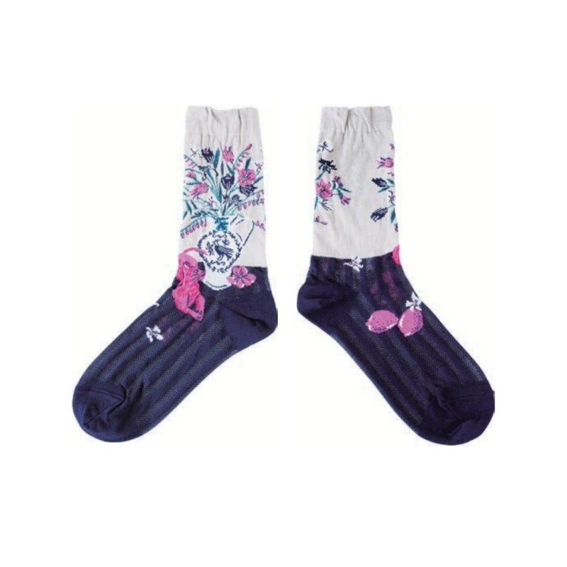 andeotte ハイゲージクルーソックスFLORAL LIFE/GY 【日本製】