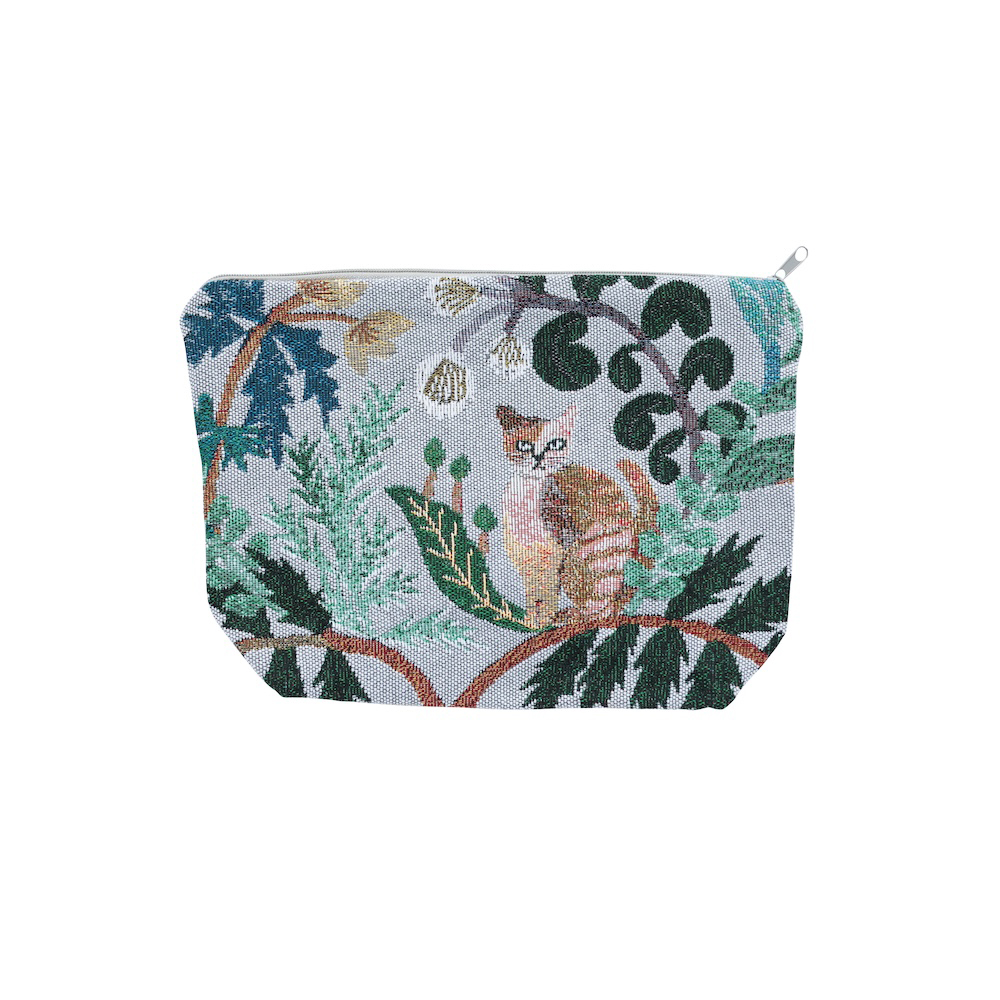 松尾ミユキさんによる、動物と植物の切り絵モチーフが広がる、ゴブラン素材のポーチです。