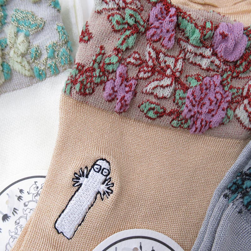 MOOMIN ソックス ゴム口 逆スパ 花柄+ニョロ刺繡 / 003