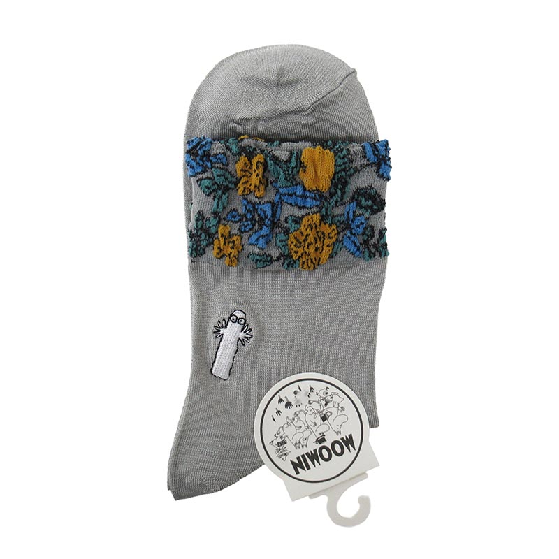 MOOMIN ソックス ゴム口 逆スパ 花柄+ニョロ刺繡 / 017