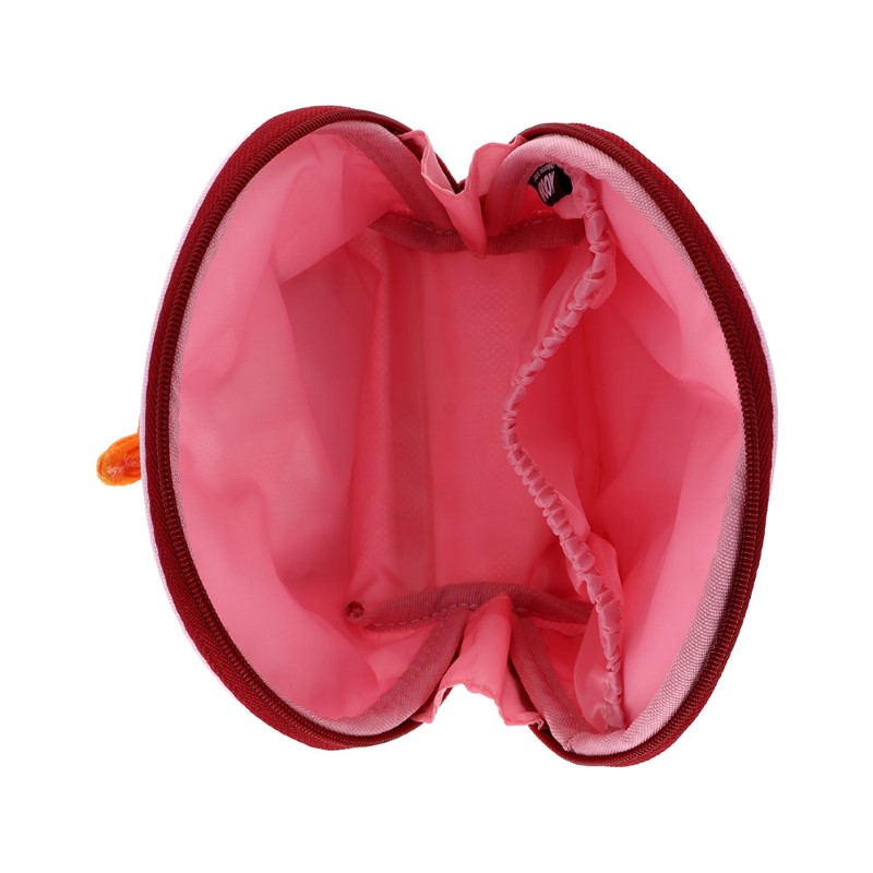 ポケットの中から半立体のキャラがのぞいているミニポーチ。