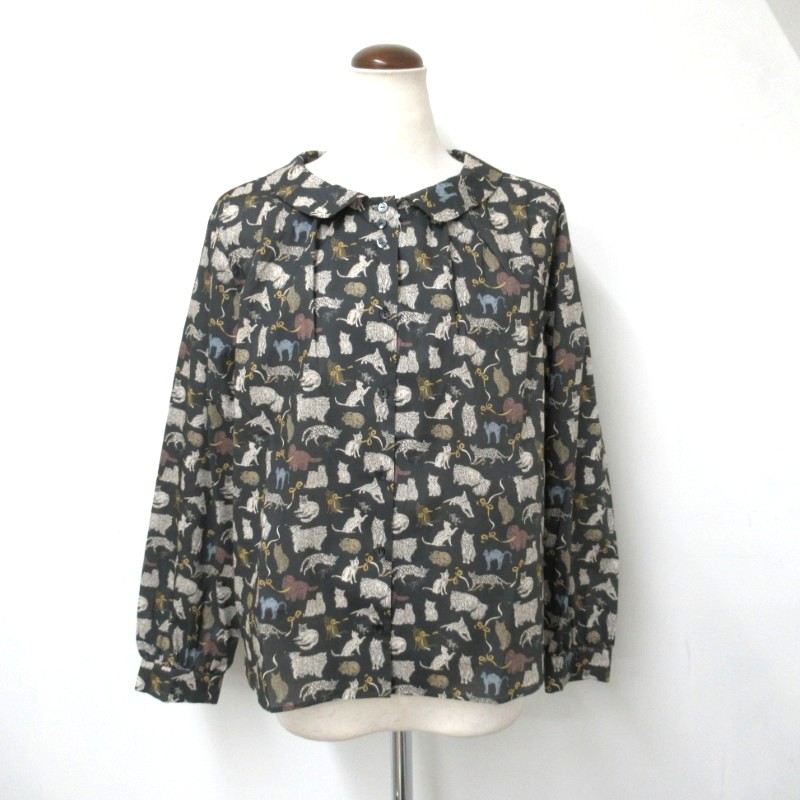 ギャザーを寄せたローカラーが可憐な雰囲気。トップに並んだ3つ釦もちょっとしたポイントです。