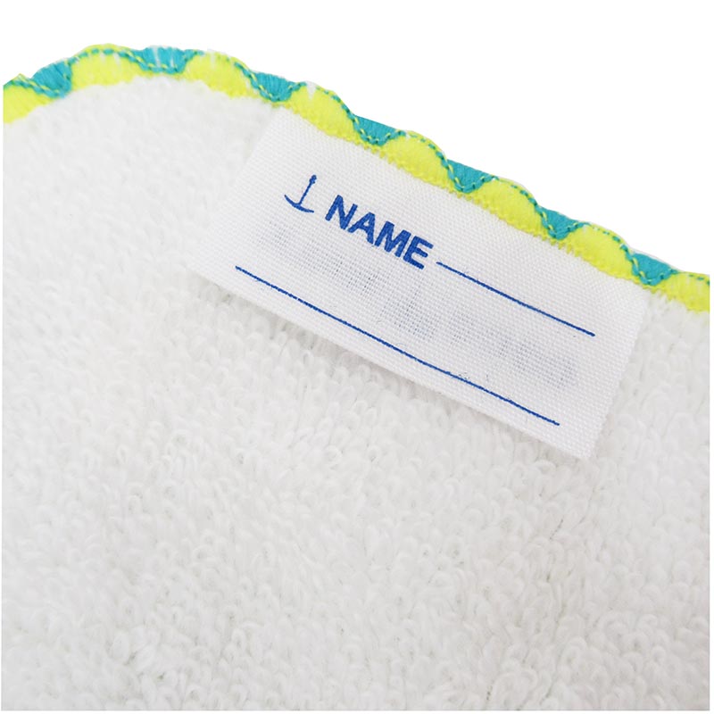 子供服の小さなポケットに入るサイズで、タグの裏には名前が書けるので通園通学にもピッタリ。
