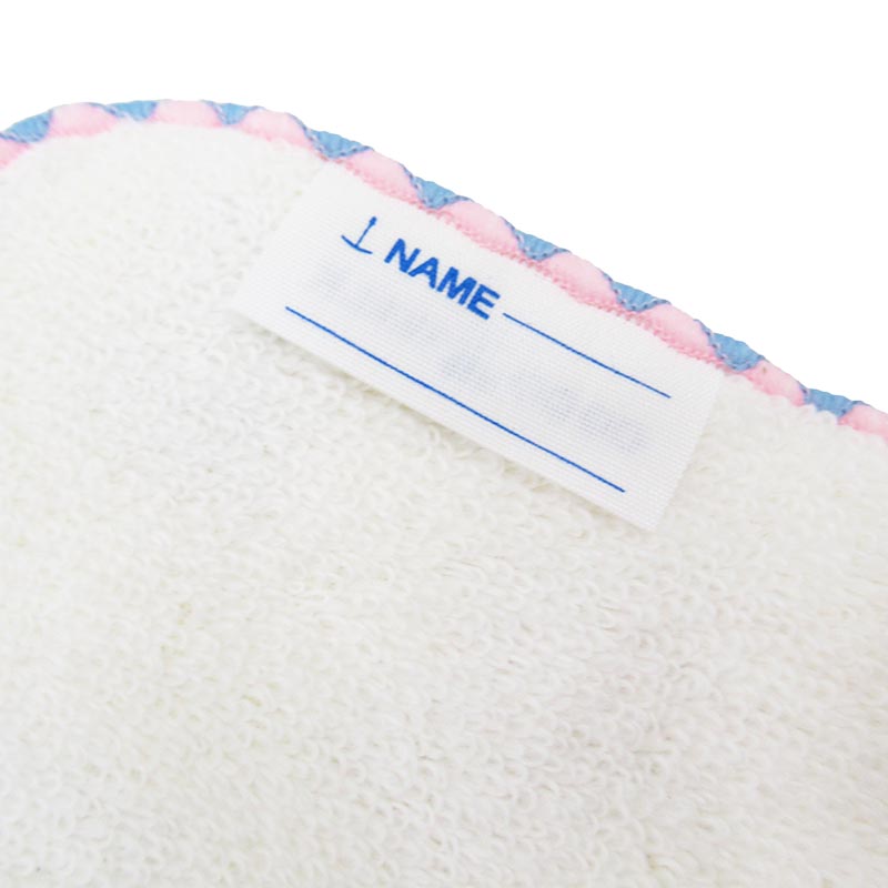 子供服の小さなポケットに入るサイズで、タグの裏には名前が書けるので通園通学にもピッタリ。