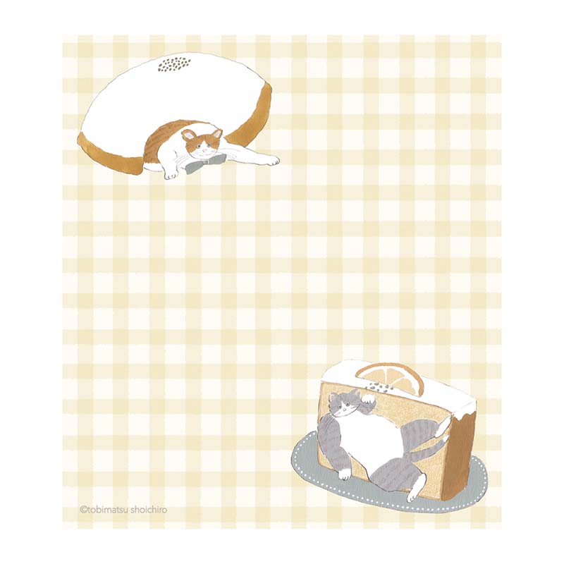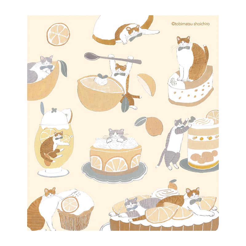 いま注目のイラストレーター・トビマツショウイチロウさんによる、たくさんのネコと甘いスイーツが描かれた特別なシリーズです。