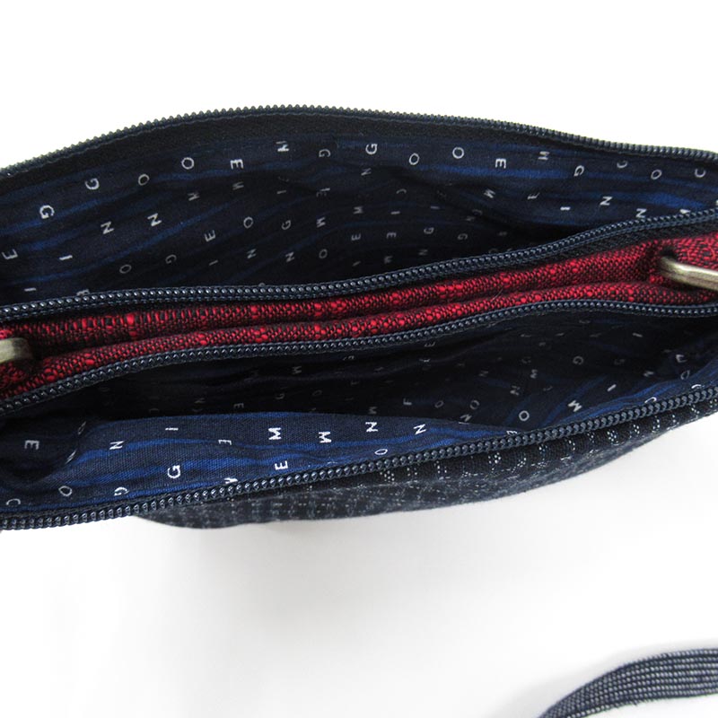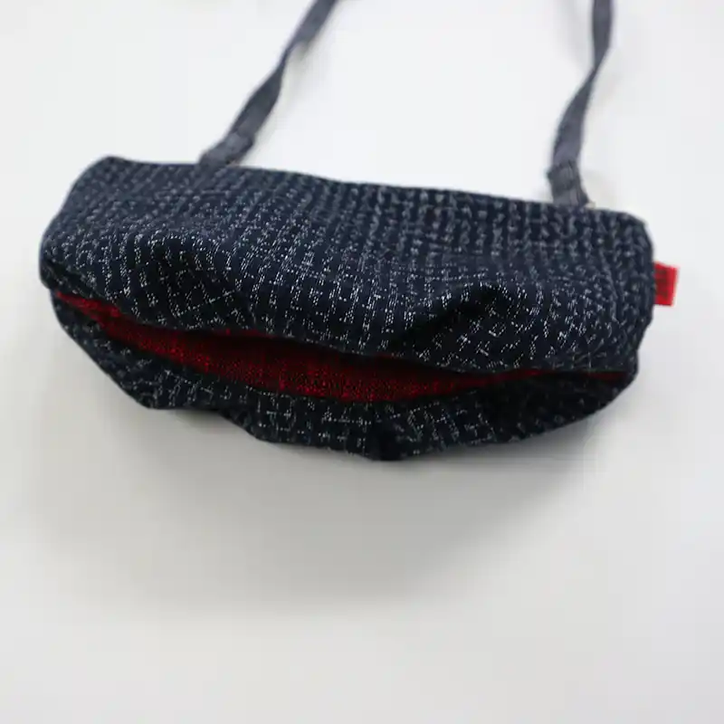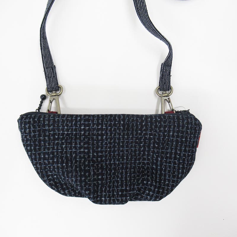 儀右ヱ門 久留米絣 ポシェット VV / 文人 黒/白