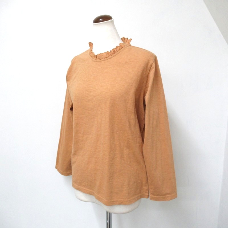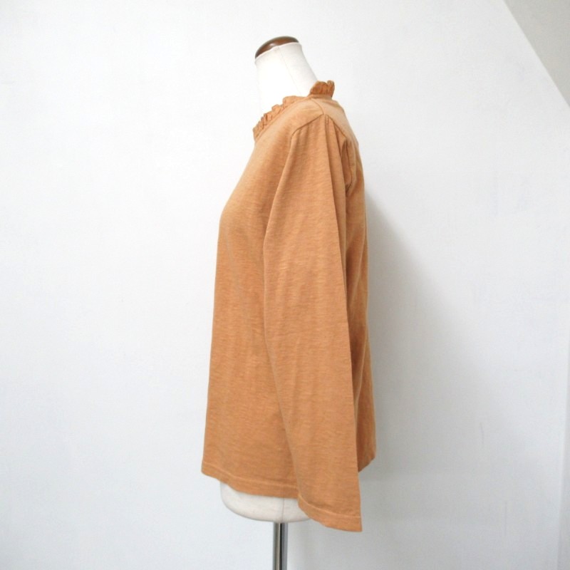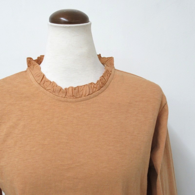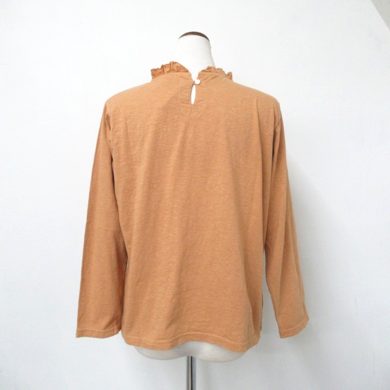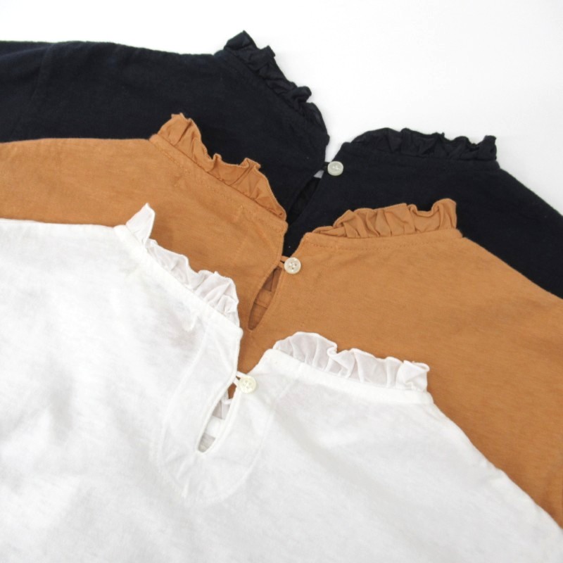 布帛のフリルカラーが上品な雰囲気のバーフィル天竺プルオーバー。