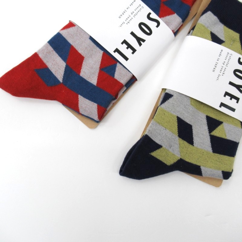 SOYEL 3色幾何学ハイクルーソックス 【日本製】