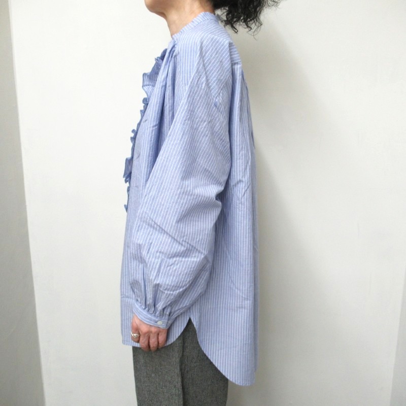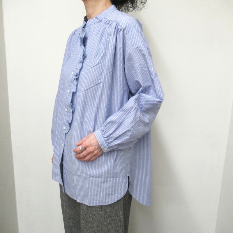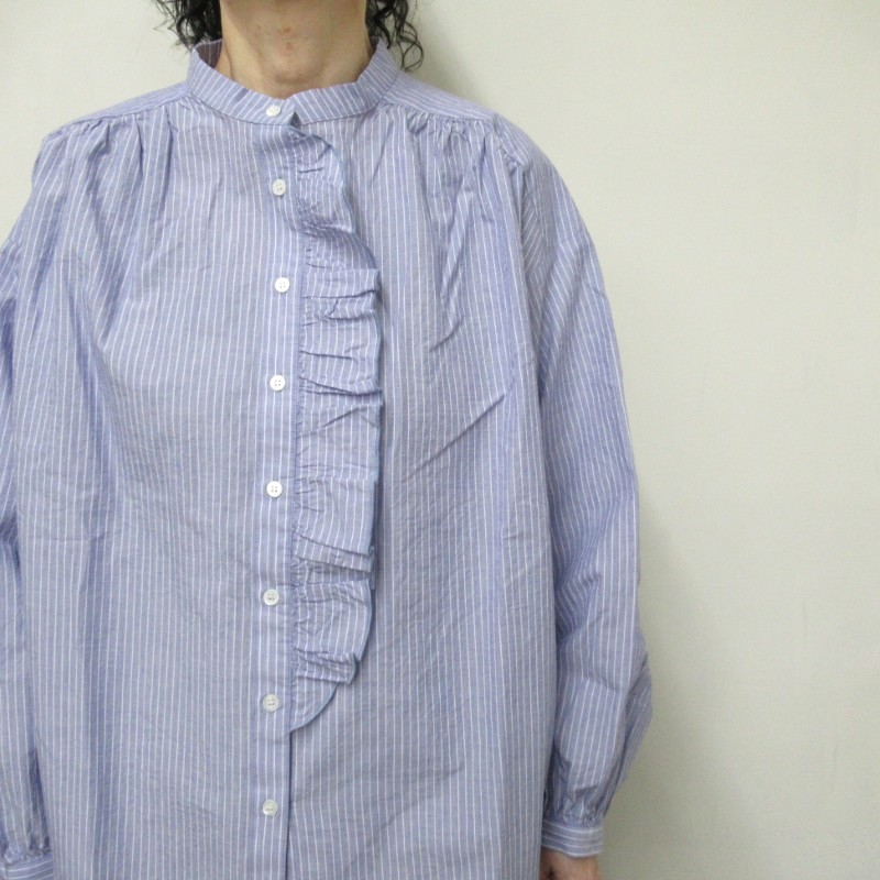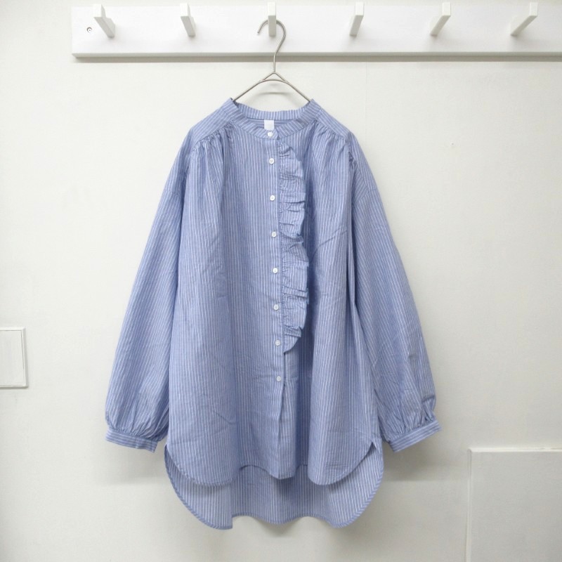 DAYS-sohi- チュニック丈フリルシャツ 56846 /ペンシルストライプ75 【日本製】