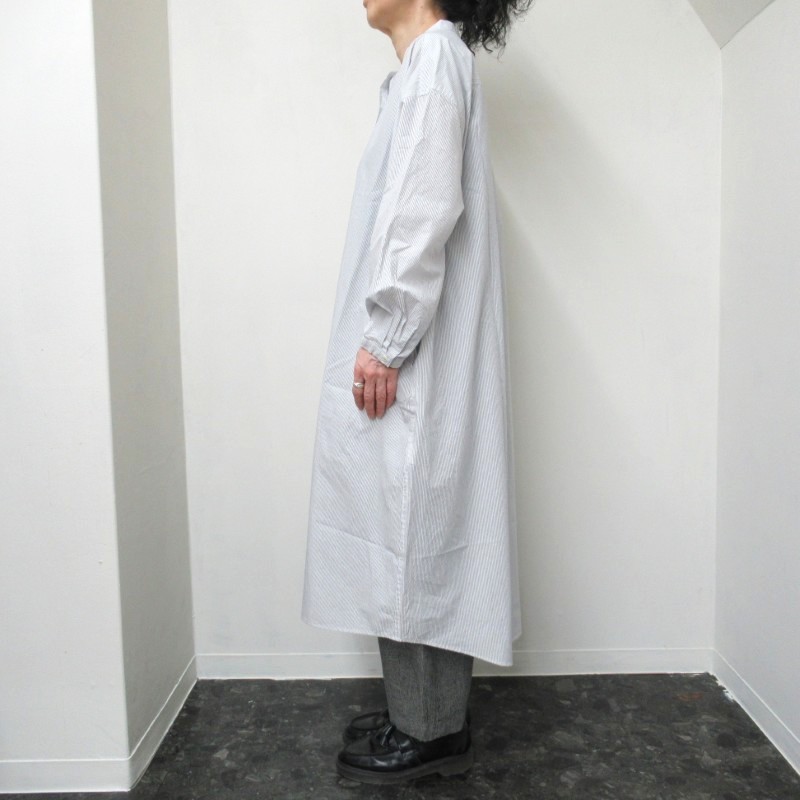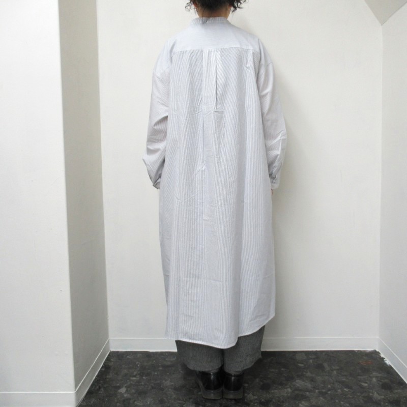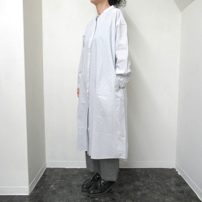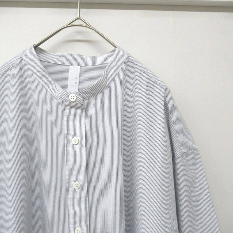 パンツとのレイヤーや、羽織スタイルなど、すっきりとしたバンドカラーなので様々な着こなしが楽しめます。