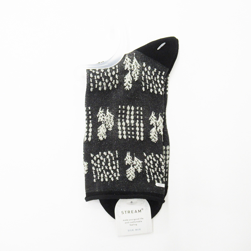 STREAM シルクMIX 草花ドットクルーソックス BK