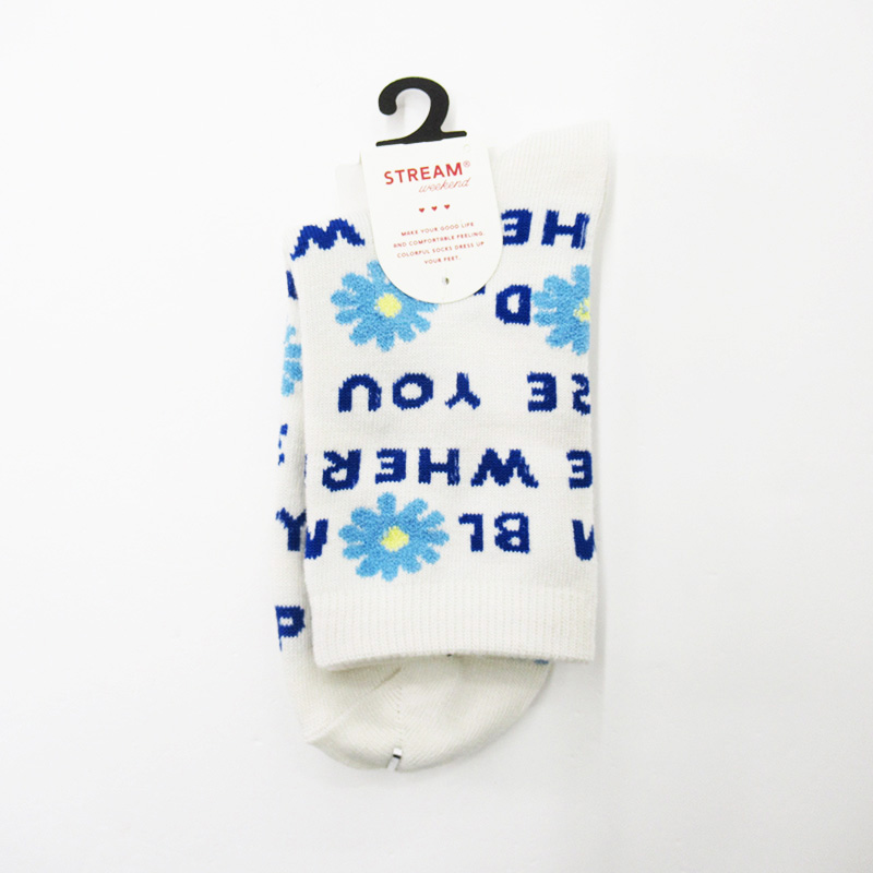 STREAM 花柄メッセージクルーソックス WH