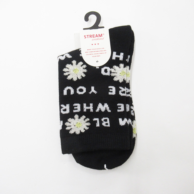 STREAM 花柄メッセージクルーソックス BK
