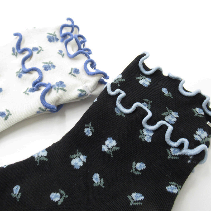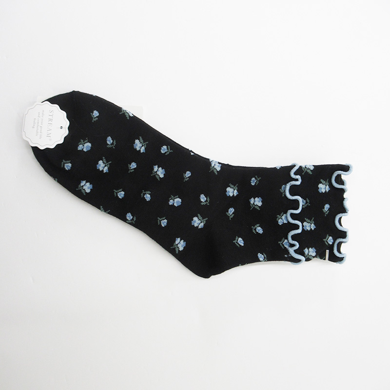 STREAM 小花柄メロウクルーソックス BK