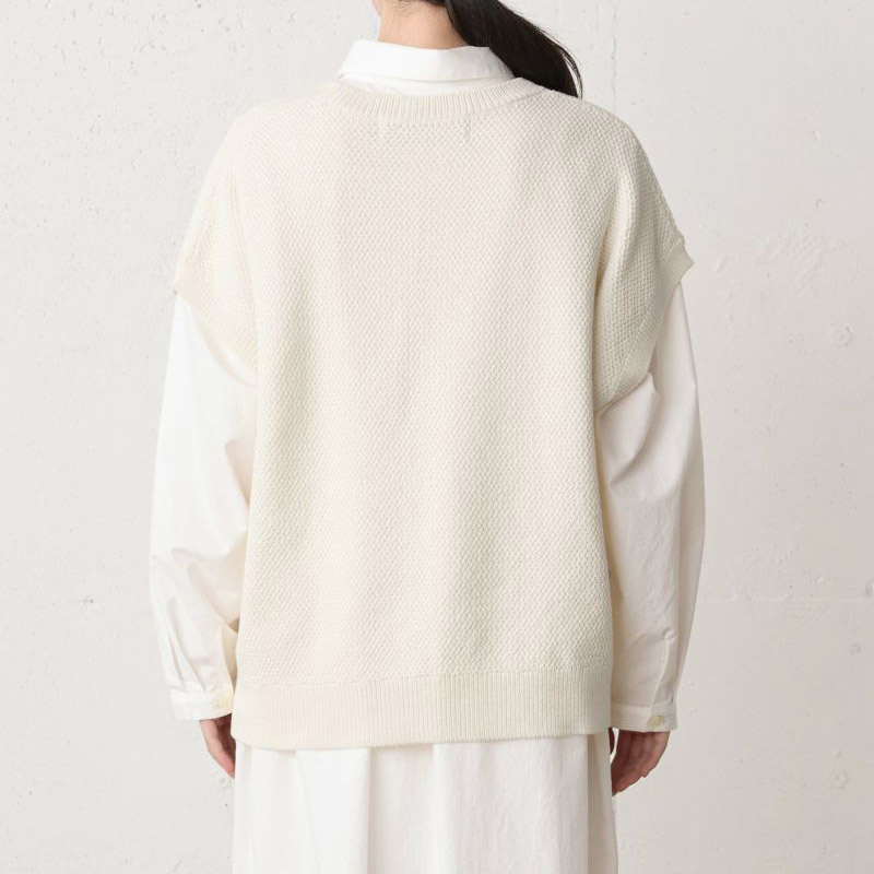 ポコポコとした独特の編み目を持つ鹿の子編みのニットベスト、コクーンニットベストです。