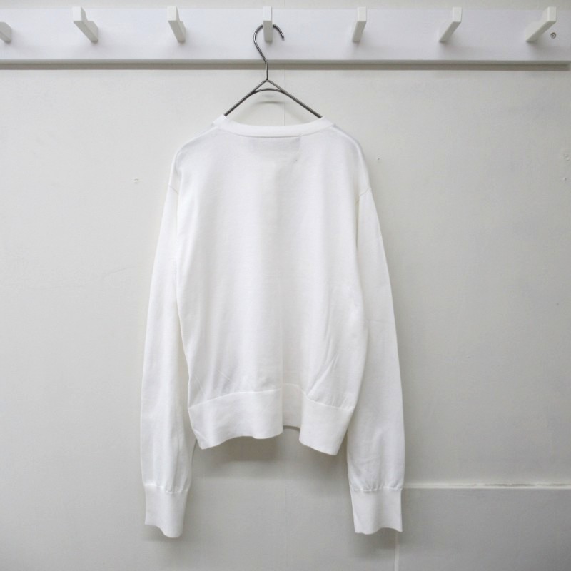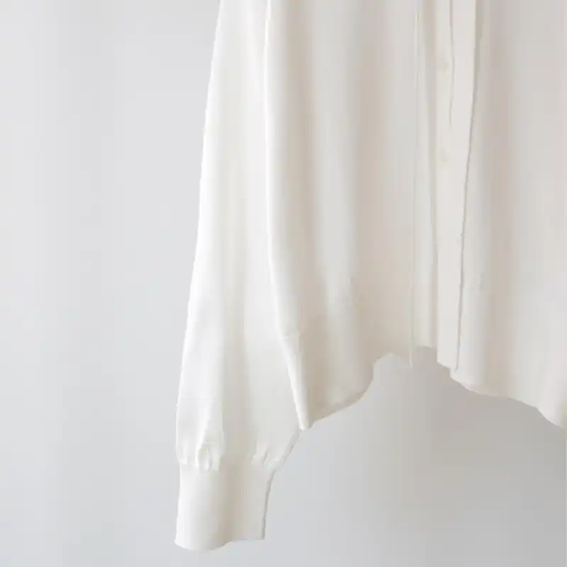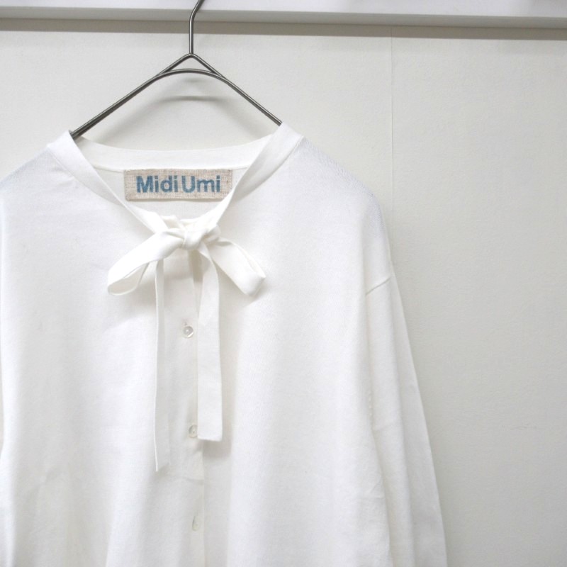 布帛などのシャツとは異なりボウタイ付きカーディガンは珍しく、ニットアイテムでも清楚な着こなしを演出します。