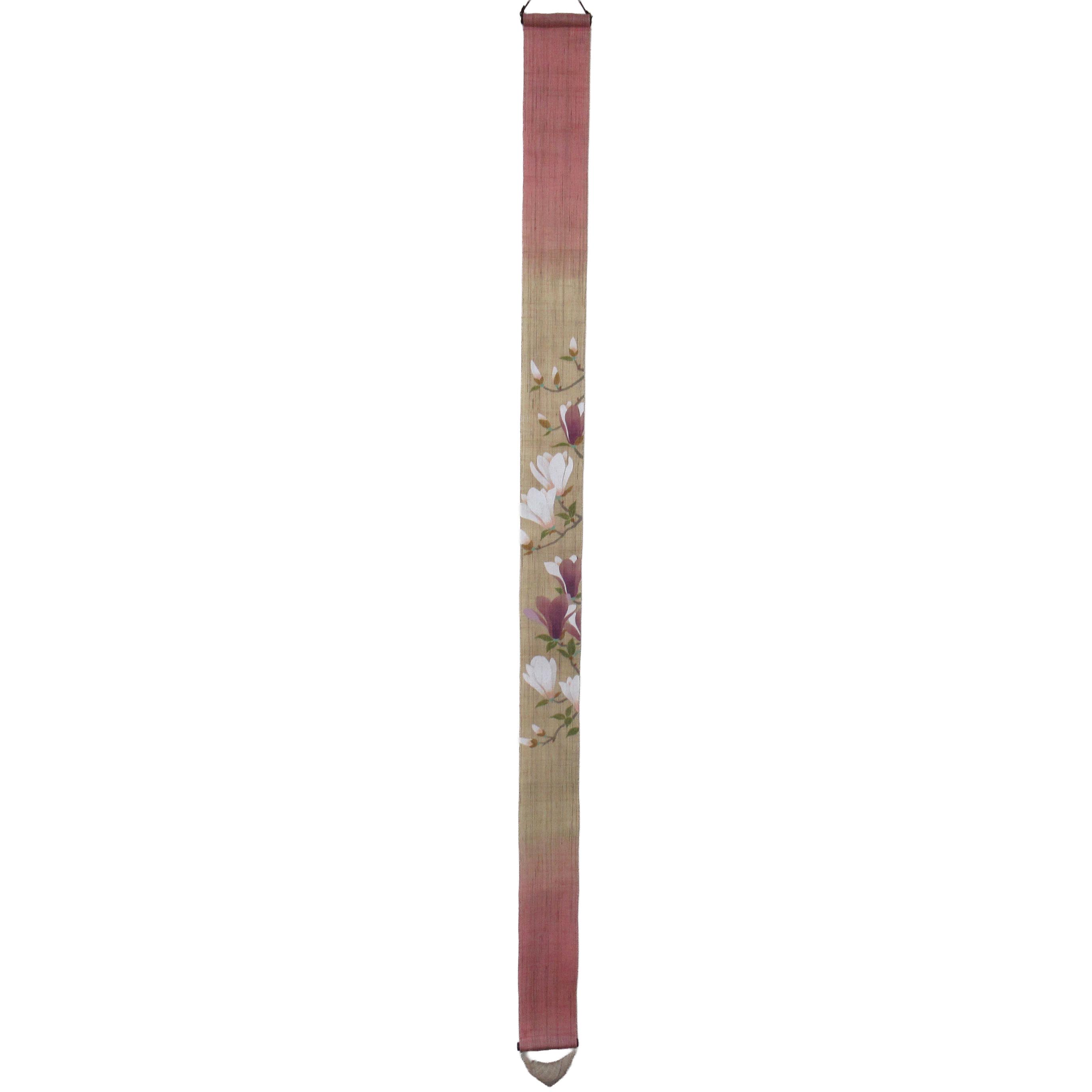 1点1点手作業で引染や型染、手描きなど模様に応じて伝統技法を使い分けて染め上げて作られた、巾がスリムで飾る場所を選ばないタペストリー。