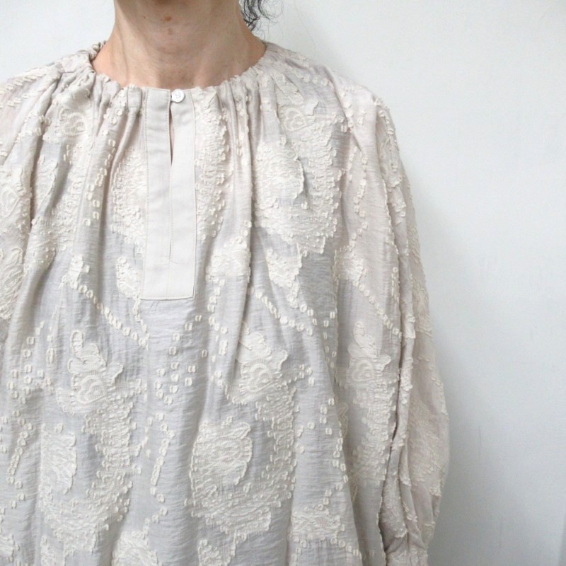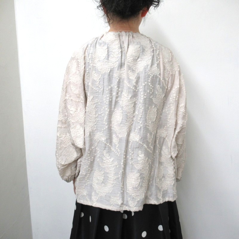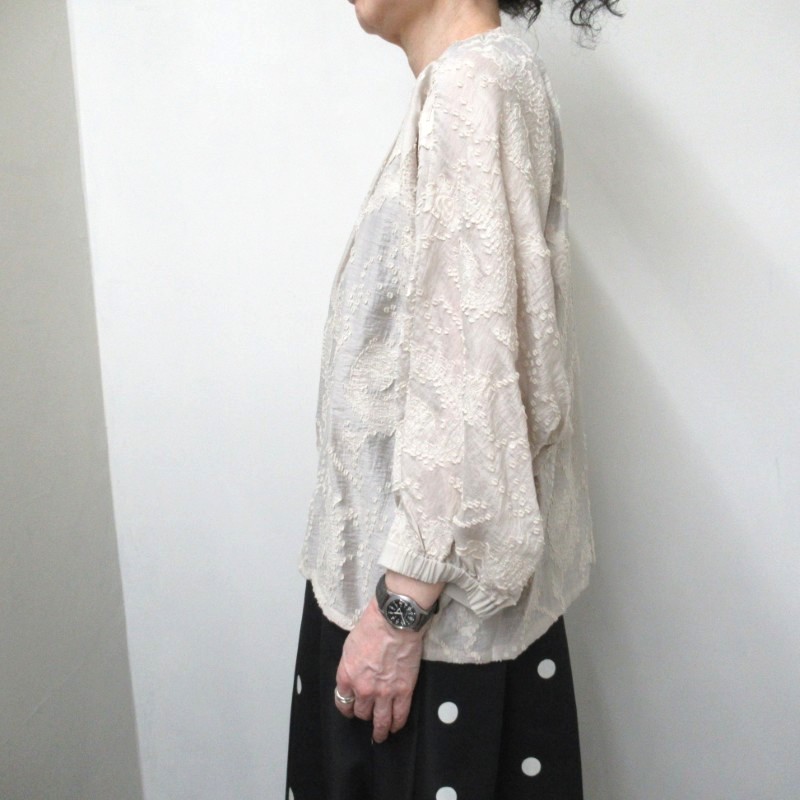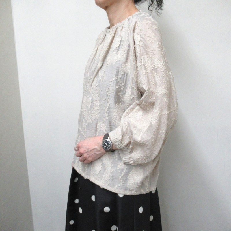 カットジャガードが華やかなブラウス。