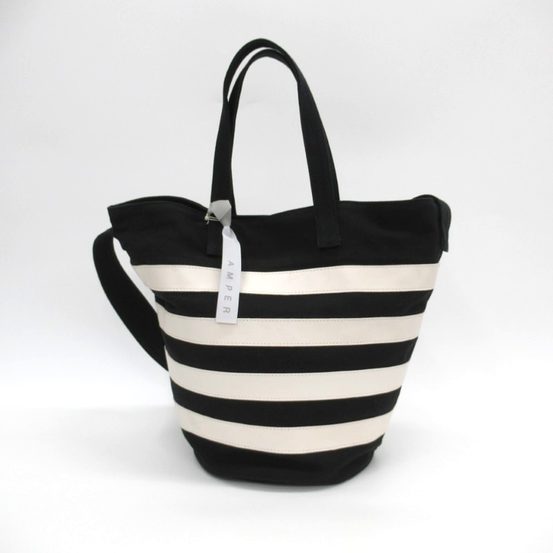 AMPER キャンバス*レザー2wayバケツバック /BKボーダー