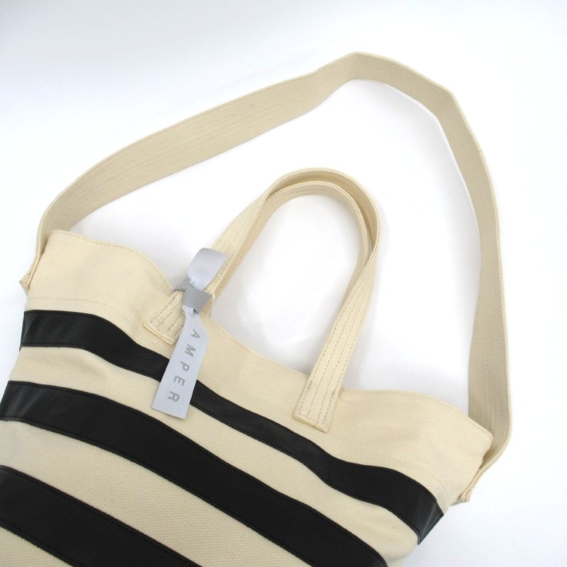 AMPER キャンバス*レザー2wayバケツバック /NTボーダー
