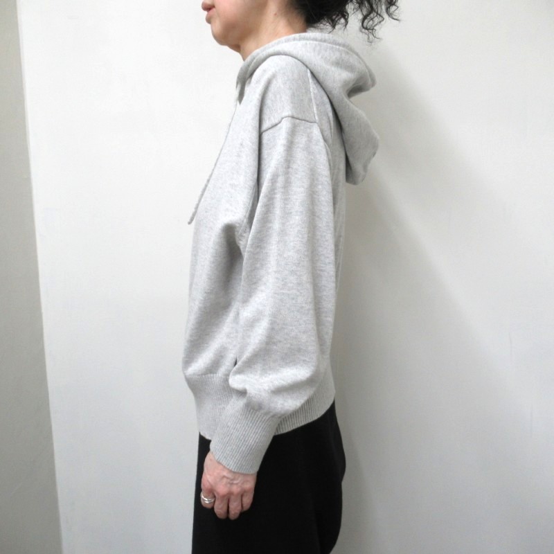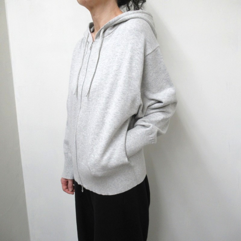 スウェットのパーカーも良いけれど、ニットっていうのがカジュアル過ぎず、品良く着れてオトナにはちょうど良い1枚です。