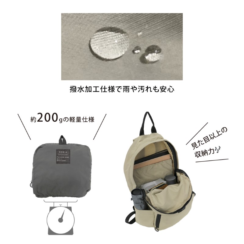 SOBIA 軽量・撥水・携帯 エアーグラムパッカブルリュック BK