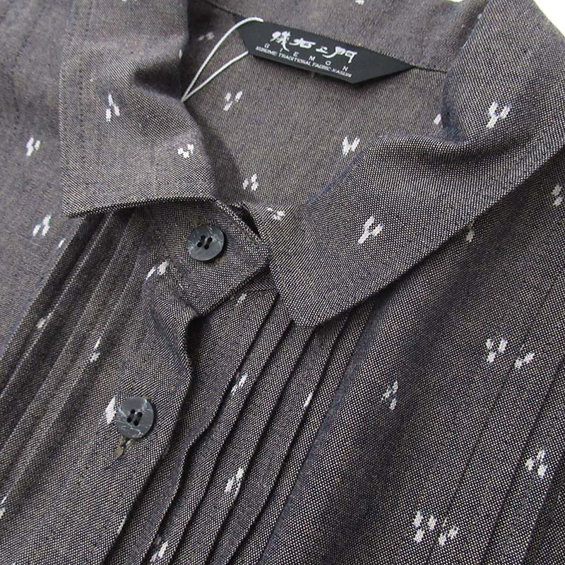 儀右ヱ門 久留米かすり 前開きブラウス セ517 三星14立ベージュ/白
