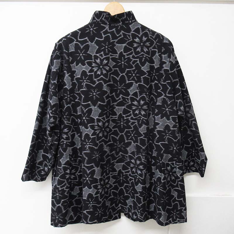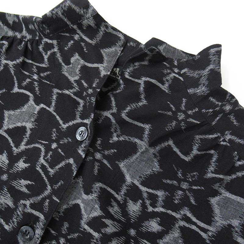 儀右ヱ門 久留米かすり 前開きブラウス タ544 フラワー黒/白