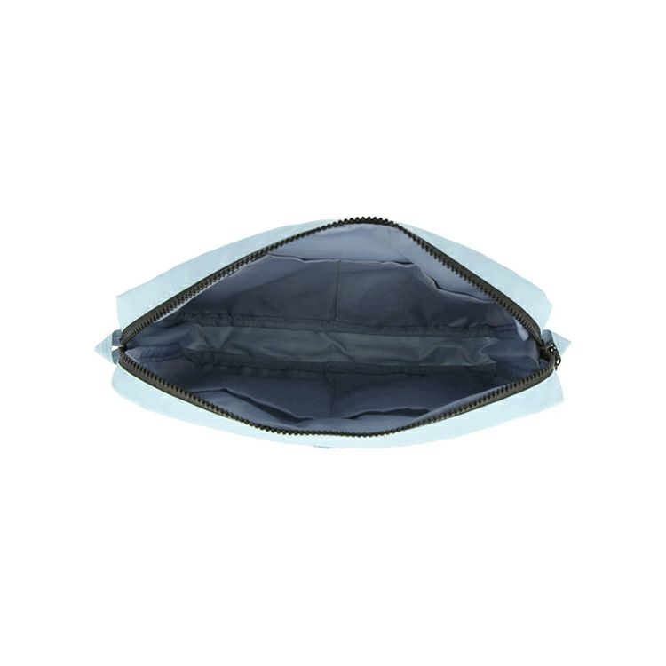 軽量で柔らかな素材。大小様々なサイズのポケットは14個で、裏面と内側には便利なマジックテープ付きポケットがあります。表面と内側には仕切り付きポケットもあり、スマートフォン、ノート、筆記具など身の回りの小物を機能的にまとめて収納できます。別売りのストラップを付けると、コンパクトなサコッシュとしても使用可能。ストラップは、デザインの相性が良い「インナーキャリング ショルダーストラップ コード」を組み合わせて使うのがおすすめです。