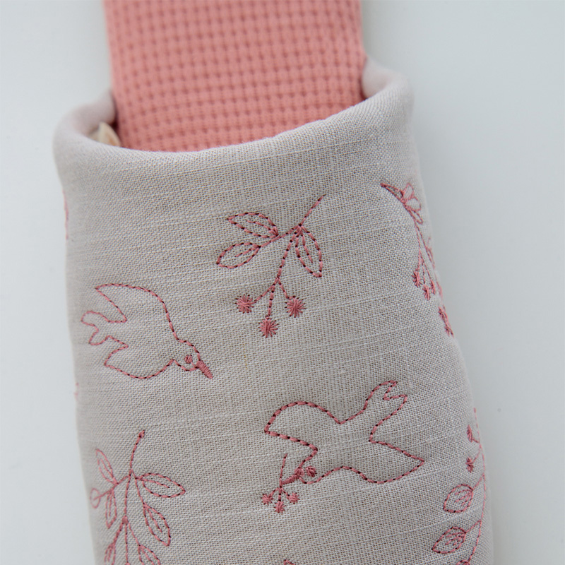 お花や鳥など自然モチーフの刺繍を贅沢に施した、春カラーの軽量ルームシューズ。