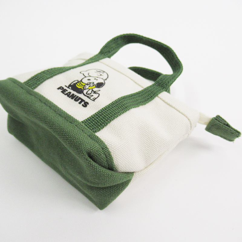 チャーリー・ブラウンとスヌーピーがプリントされたキャンパストート型の可愛らしいミニサイズのポーチ。コスメや小物の収納にぴったりです。箱入りでギフトにもおすすめです。