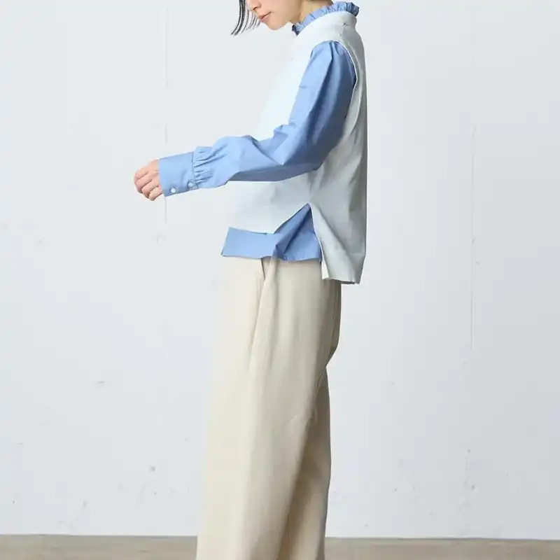 襟付きデザインが程よくきちんと感を演出し、カジュアルになりすぎないのもポイント。