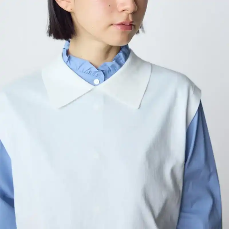 コンパクトなサイズ感のニットベストで、1枚着としてはもちろん、シャツやTシャツとのレイヤードにもお使いいただけます。