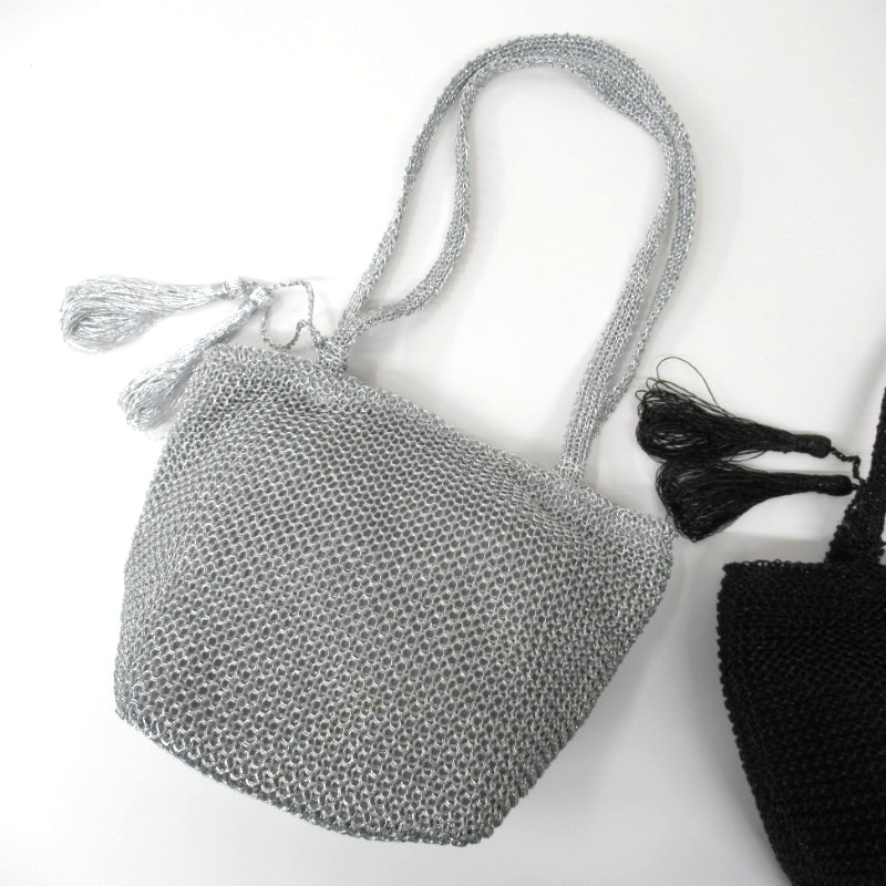 毎シーズン人気のメタリックヤーン素材のバッグ。