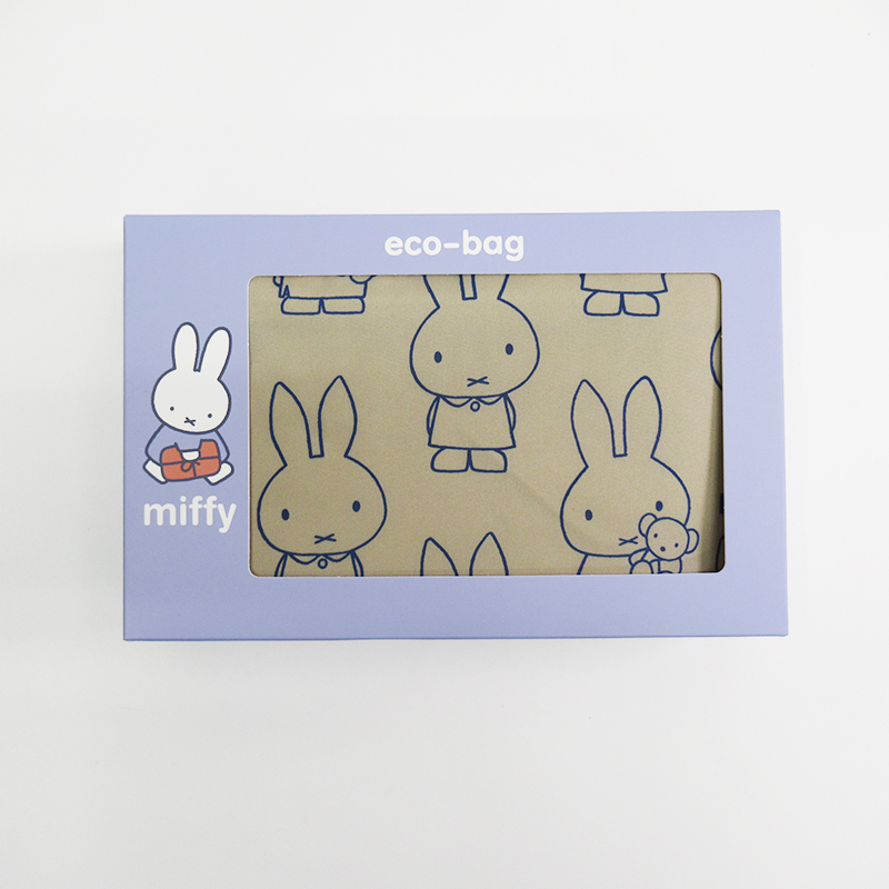 使いやすい落ち着いた色合いの、ミッフィーの総柄がかわいいエコバッグ。くるりと折りたたんでお買い物にもお出かけのサブバッグにもおすすめ。ファスナー付きでお出かけにも安心の仕様で仕上げました。