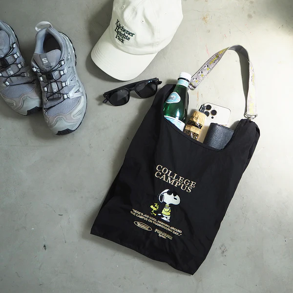 PEANUTS PN/ストラップ付きショッパーバッグ BK