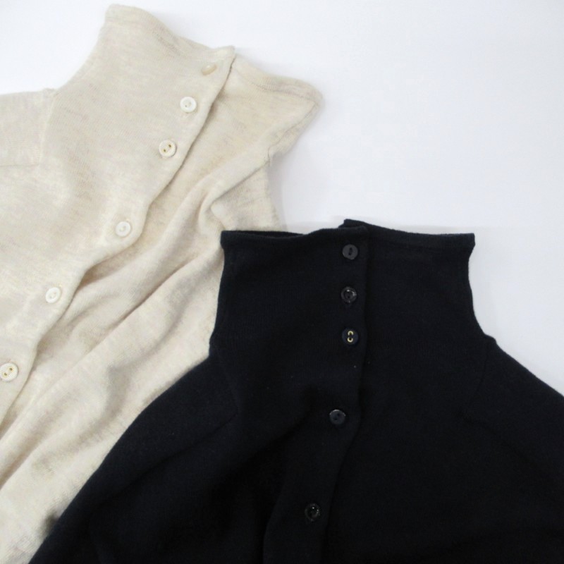 ハイネックニットとしてもカーディガンとしても、着こなしに合わせて自由にアレンジできる一枚です。