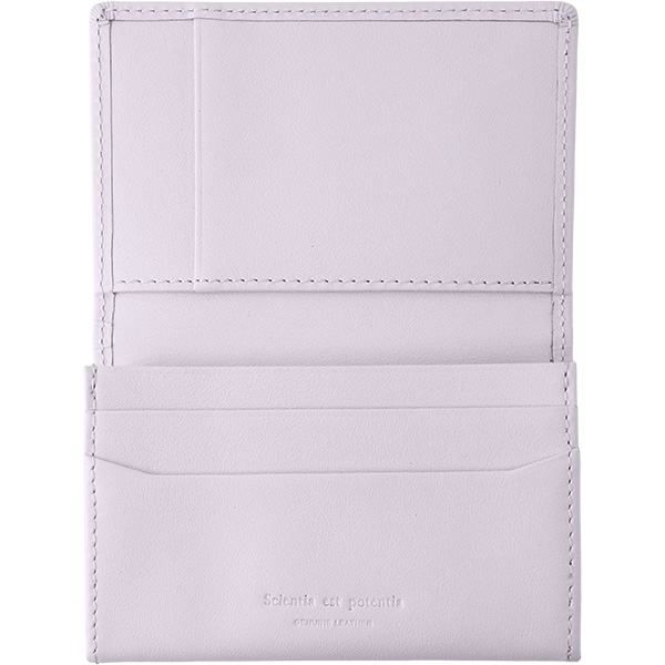 カラフルなソフトレザーでつくった二つ折りの名刺入れです。シンプルな仕上げながら、メインの名刺入れの他に4ヶ所のカードポケット付きで、カードケースとしても使えます。