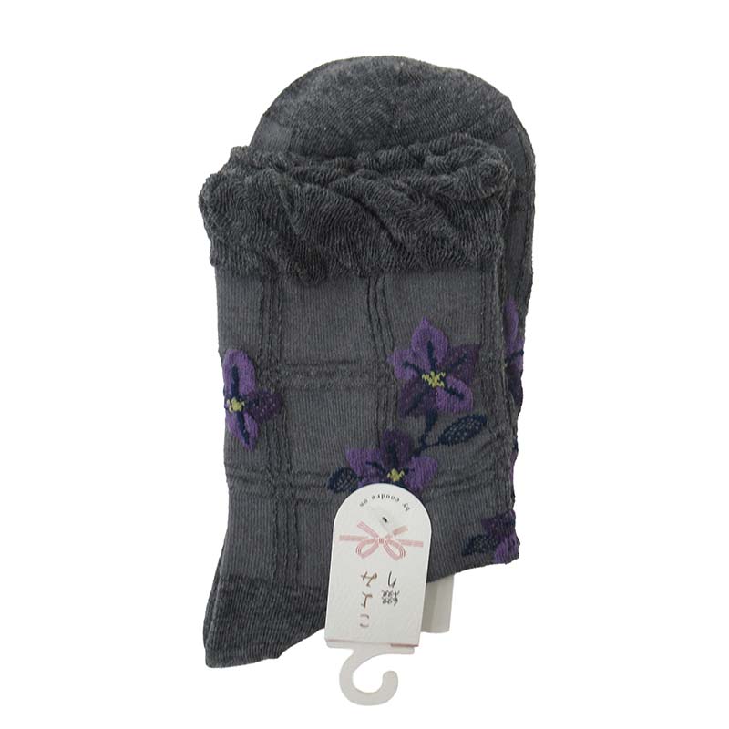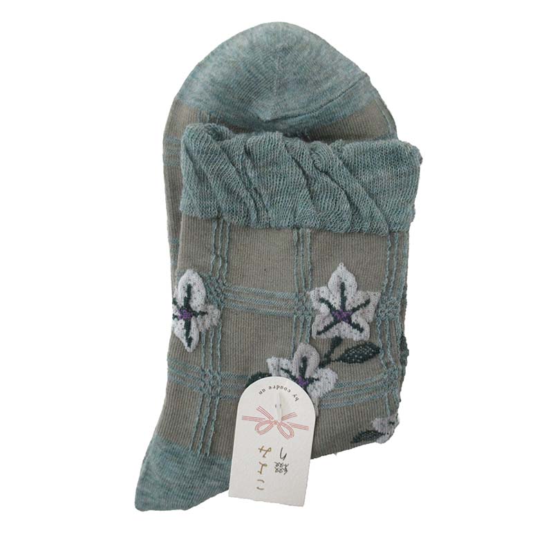 coudre un こよみ撚り 格子に桔梗ソックス/041