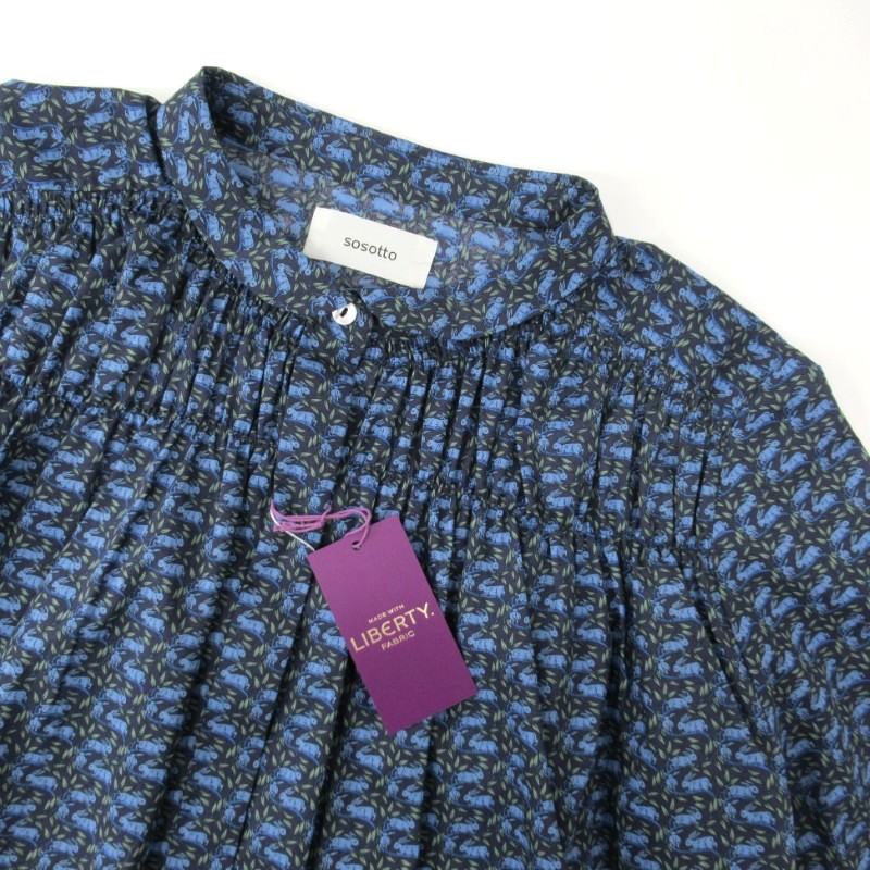 sosotto リバティチビ衿シャーリングブラウス /NV65 【日本製】