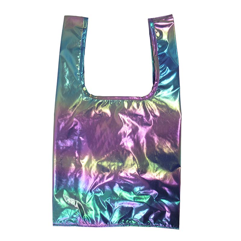 キラキラオーロラカラーが可愛いショッピングバッグ。