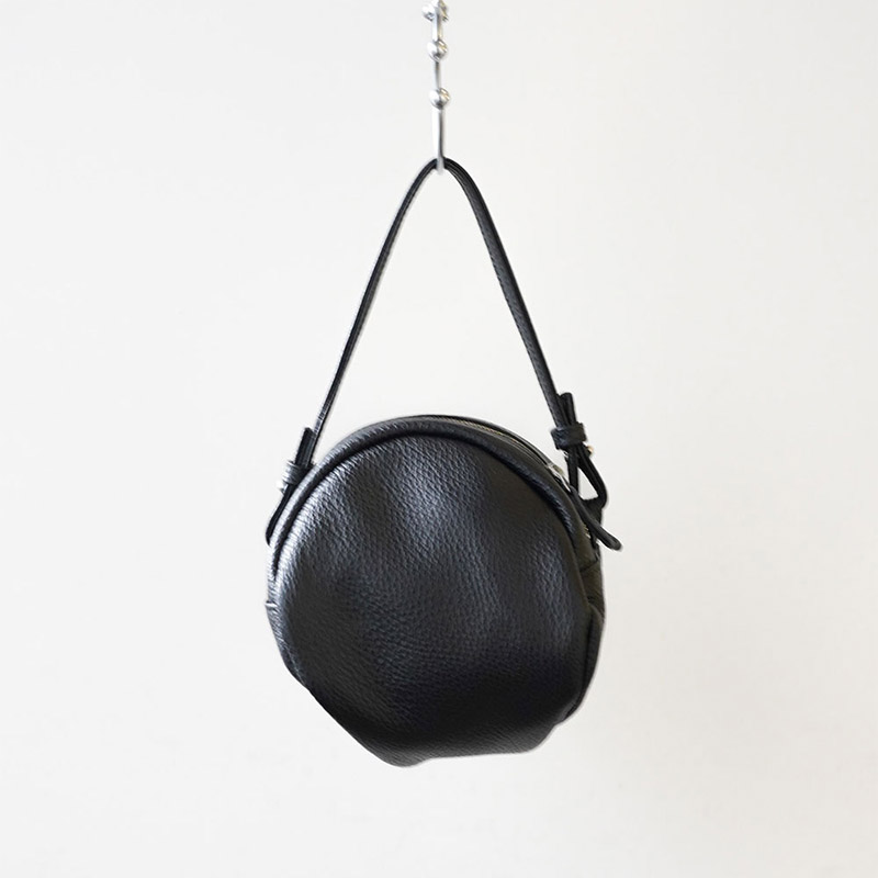 柔らかいレザーのコロンとしたテニスボールのような形のバッグ。