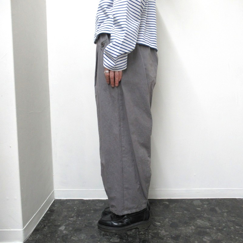 ワイドでありながら裾にもタックが入ったテーパードシルエットです。