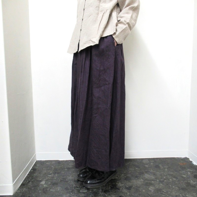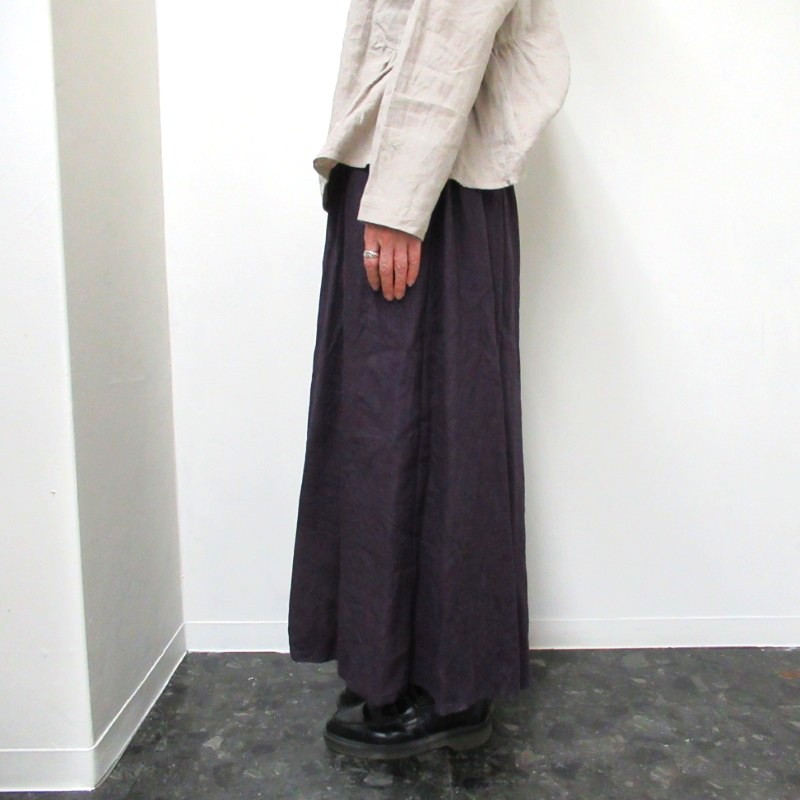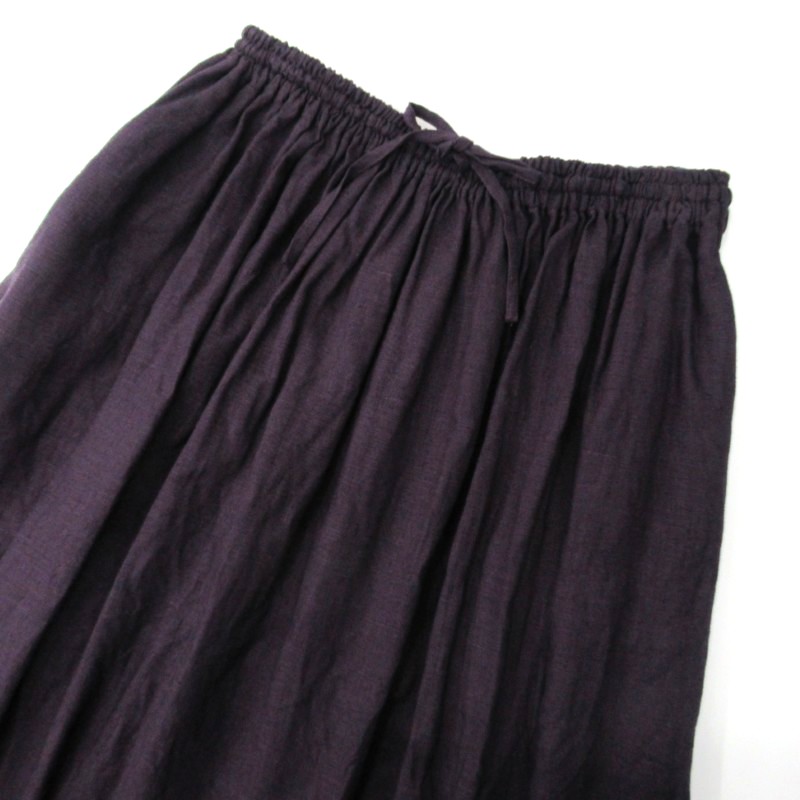 上品な光沢感があるフレンチリネン100%のギャザースカート。