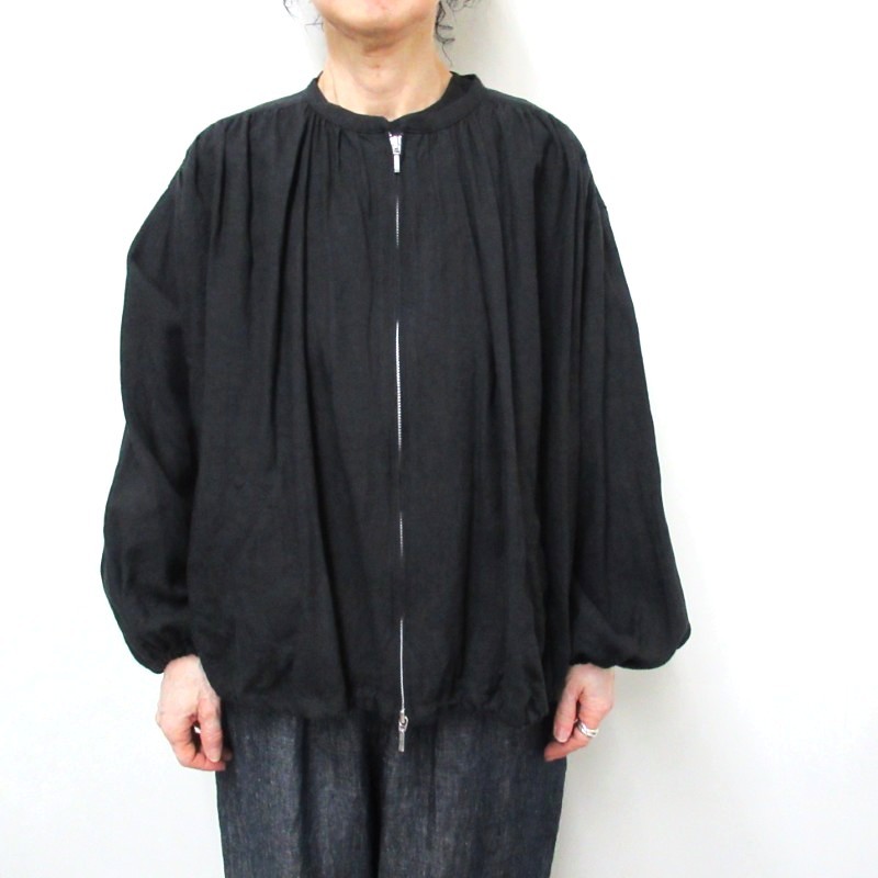 ギャザーたっぷりのシルエットがフェミニンさのあるブルゾン。